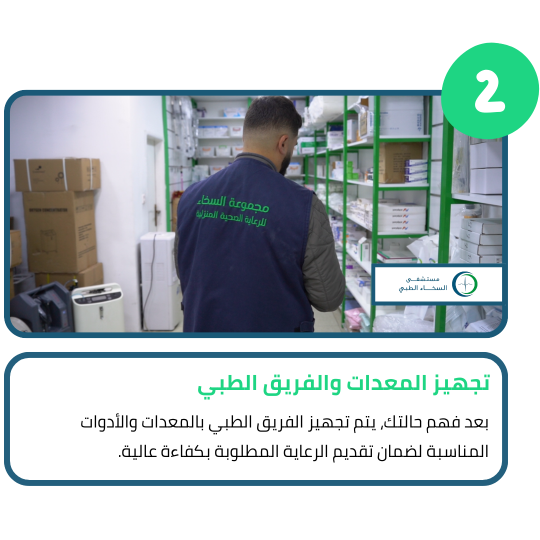 بعد فهم حالتك، يتم تجهيز الفريق الطبي بالمعدات والأدوات المناسبة لضمان تقديم الرعاية المطلوبة بكفاءة عالية.